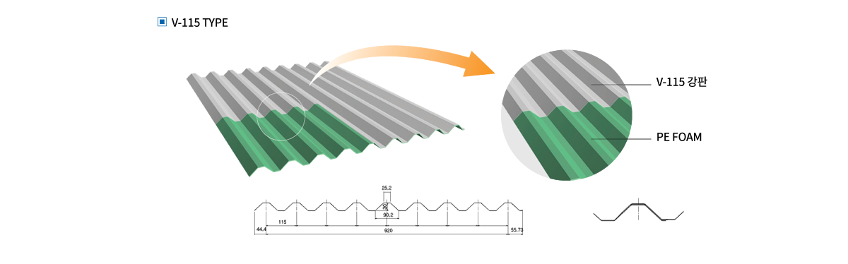 성형 가공된 강판에 폴리에틸렌 폼을 가교재로한 완전 독립된 셀구조의 SHEET를 열융착시킨 제품으로